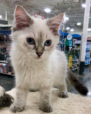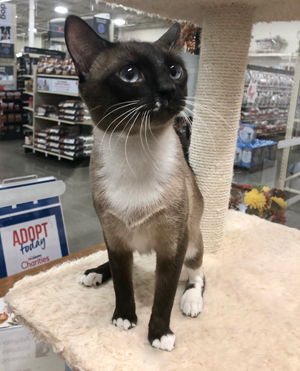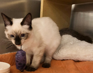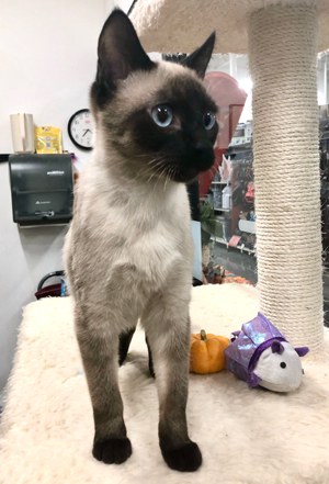 Blue is a 10-month old, male, Lynx Point Siamese. He is very affectionate, mellow and playful. Mr. Blue Eyes gets along well with other cats & dogs, loves attention and did we mention his beautiful blue eyes?