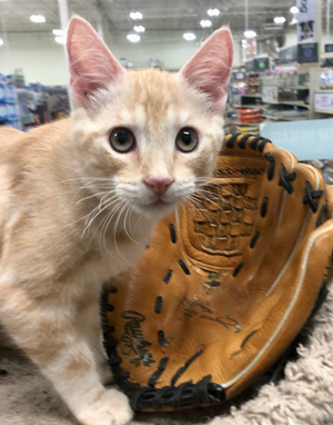 Freddie -- orange & cream tabby (DSH). Named for Freddie Freeman, Gold Glove winner and starting first baseman for the Dodgers. Freddie is good natured and gets along well with all his teammates. His talent is only surpassed by his sweetness! |