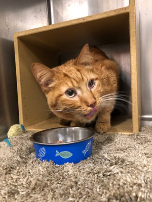 Huckleberry - is a 7 1/2 year old, male, orange & white DSH (domestic short hair). Such a sweet boy & sadly up for adoption because his owner passed away. Hoping he will be adopted with his housemate (Bubby) as they are bonded.