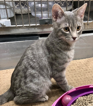 Lucky is a 5-month old, male, silver tabby. He was "gifted" to a gentleman by his X-wife but he doesn't want a cat! So, this sweet, playful kitten needs a home where he's wanted |