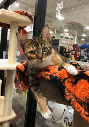 Livvie is a 5-year-old, female, orange, black & brown Maine Coon/Calico mix. Sadly, Livvie was returned to Serenity Place when her previous owner's life situation changed. She is a sweet & loving cat and THIS time she needs to find her FOREVER home.