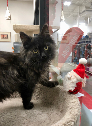 Sabrina is a 9-week-old, female, black, DSH (domestic short hair). Despite a