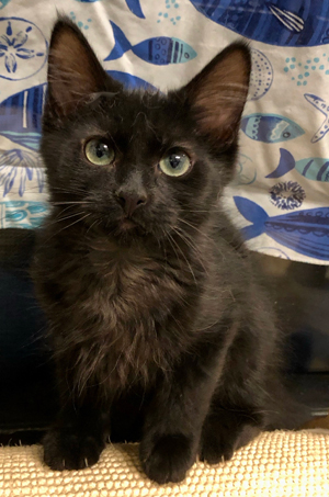 Midnight - is an 11-week-old, female, black DSH (domestic short hair).