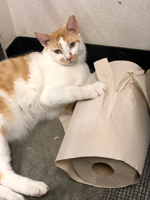 Gavin is a 2 1/2 year old male, orange & white short hair. He is very bonded with his special needs brother (Maceo) and for that reason must be adopted as a "set". Very playful & can turn almost anything into a cat toy! Maceo is a 2 1/2 year old male, orange medium hair. Maceo was born with a condition, Cerebellar Hypoplasia (CH) that permanently affects his coordination and balance. CH kitties should be placed in a home with no stairs. They WILL try (& sometimes succeed) climbing up onto furniture but may need help getting back down. He is a beautiful loving boy and bonded with his brother, Gavin.